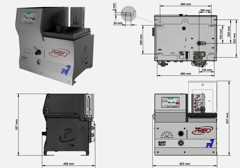 - Maschinenparameter und Firmware-Updates die über einen USB-Anschluss auf- und heruntergeladen werden